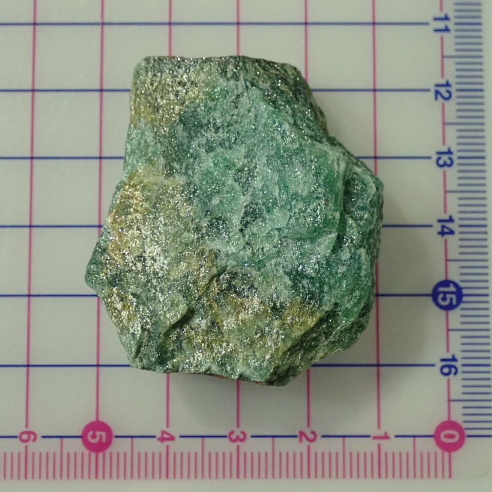 現在は、クロム雲母の微細結晶のインクルージョンによって、