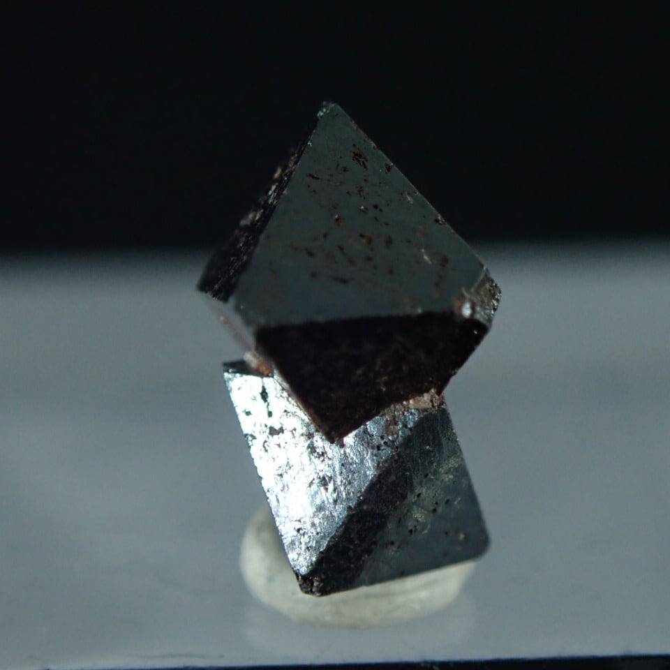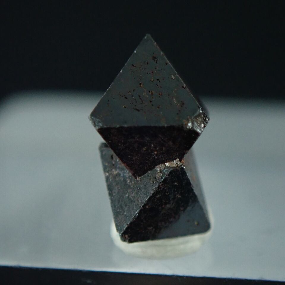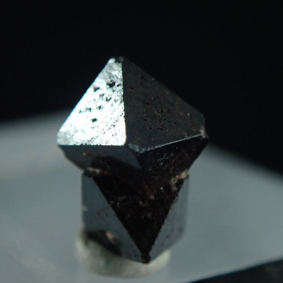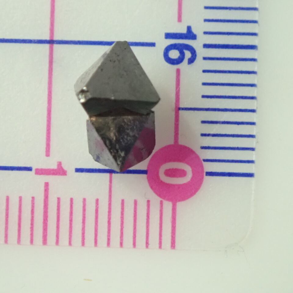 三角形の結晶からスピネルグループ鉱物の一つとされています。