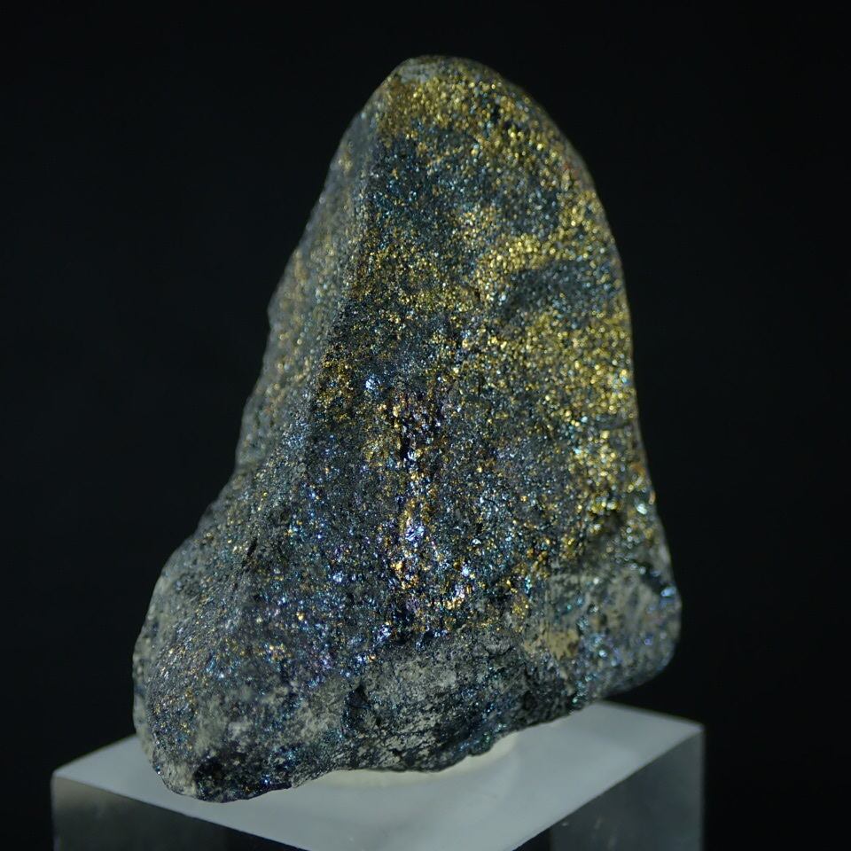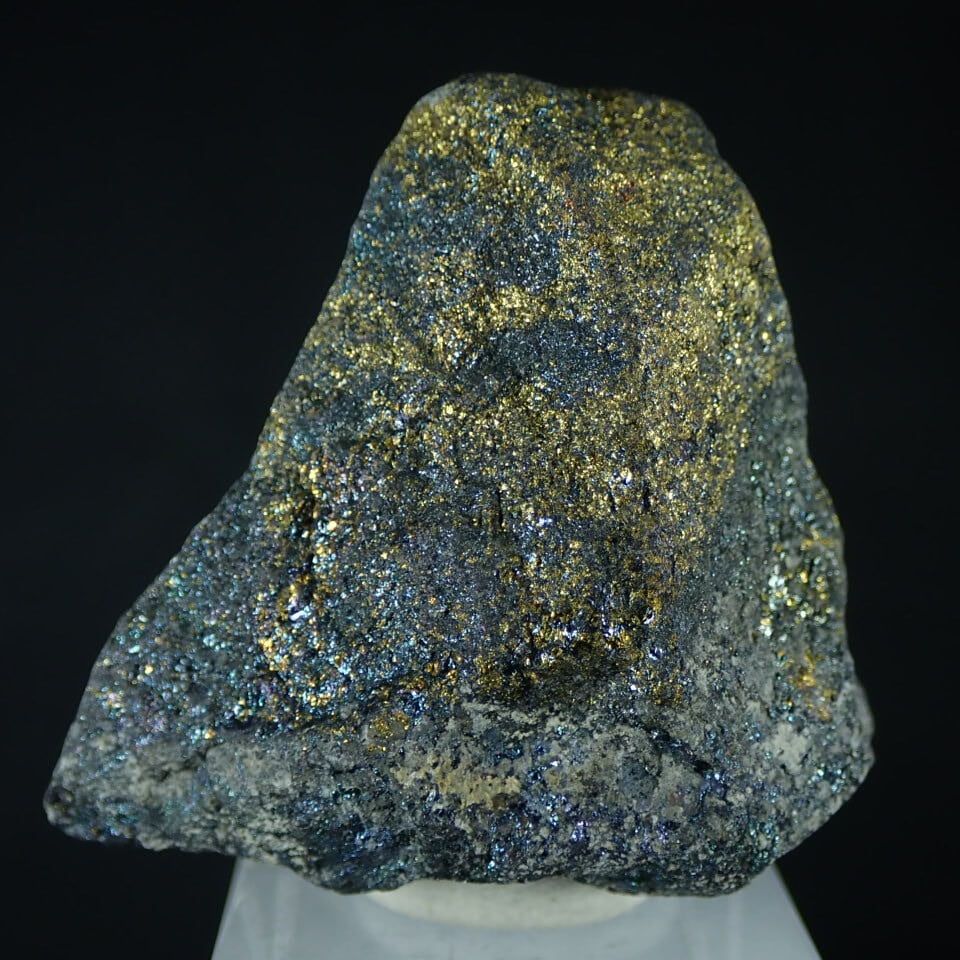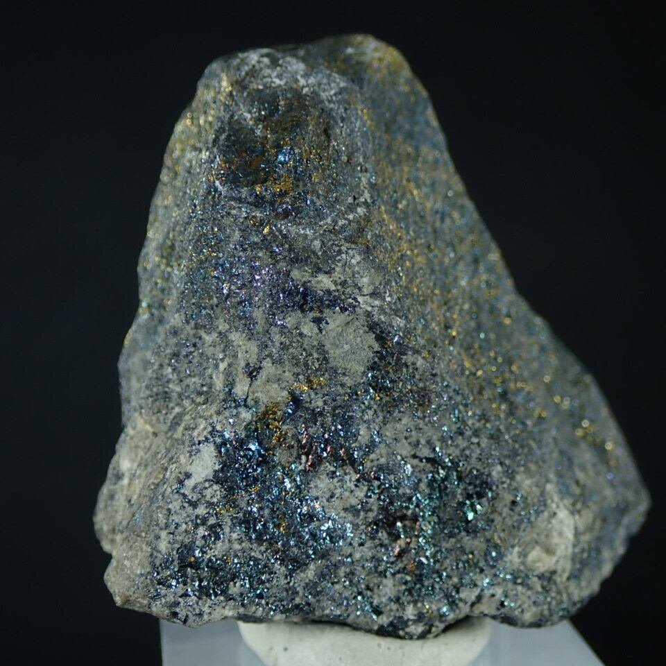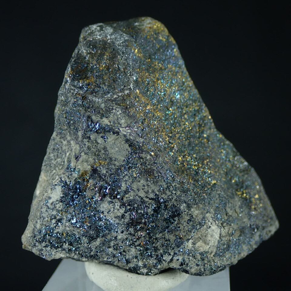 黄銅鉱が地表で変化して生まれた「二次富鉱帯」由来の班銅鉱です。